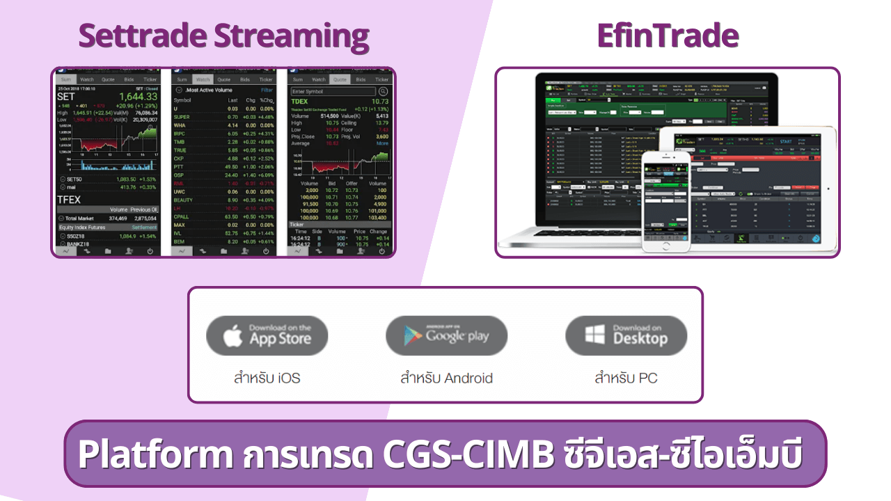 - ฟังก์ชั่น: รองรับฟังก์ชั่น Efin Stock Pick Up และ Efin Mobile พร้อมเครื่องมือวิเคราะห์พื้นฐานและทางเทคนิค