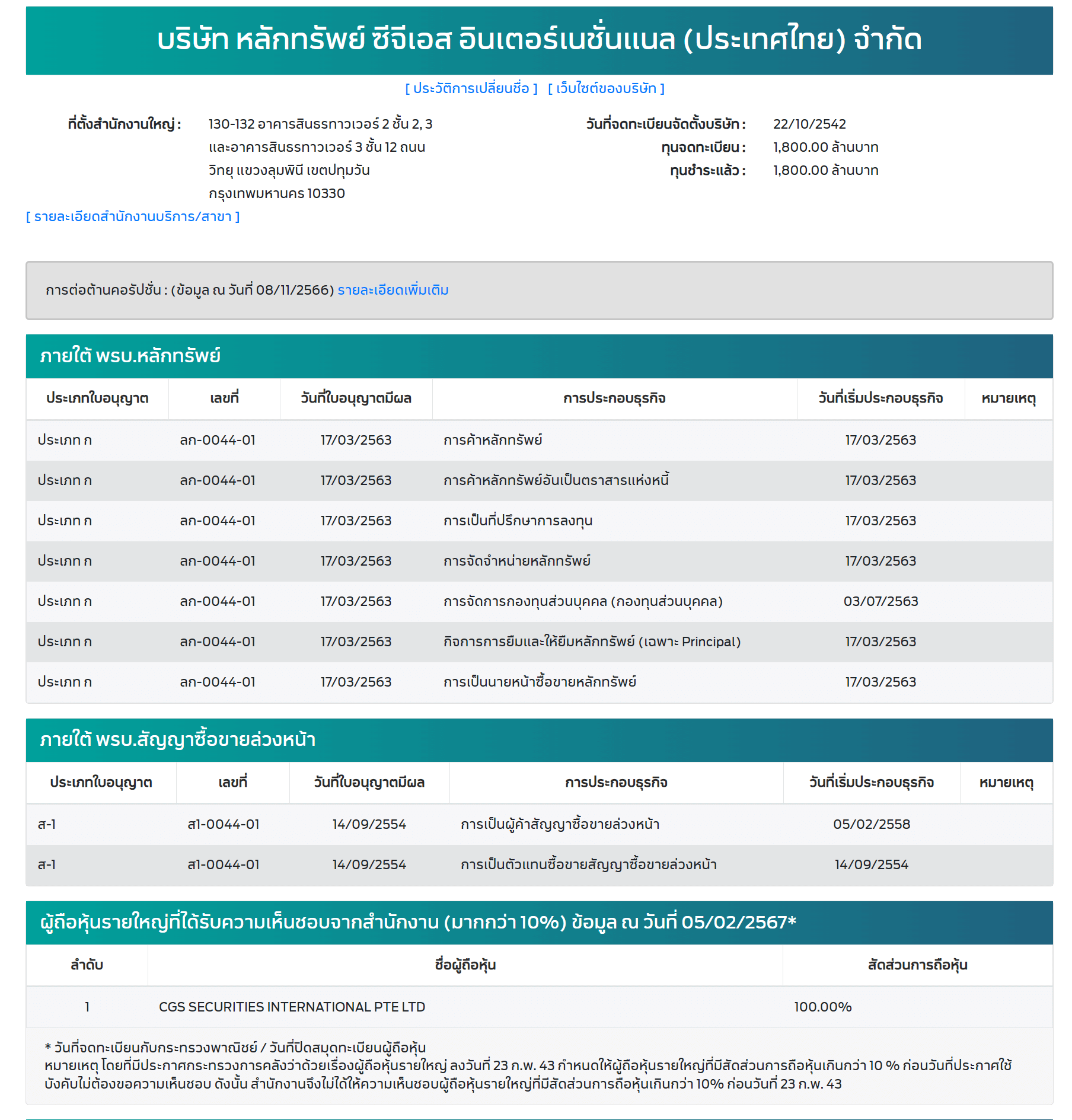 - ชื่อ-สกุล: CGS SECURITIES INTERNATIONAL PTE LTD